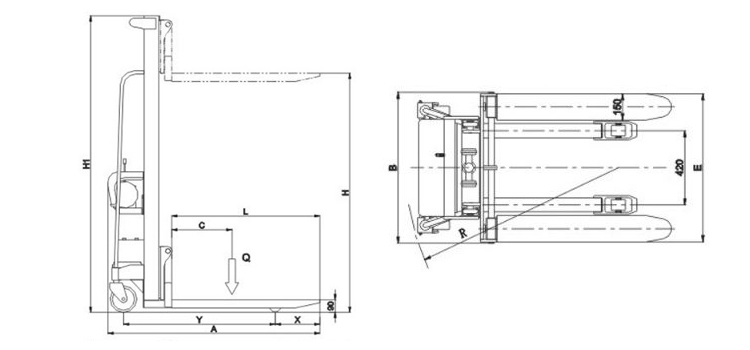 ? 沖壓成型、外觀可調(diào)、覆蓋叉腿型貨叉。