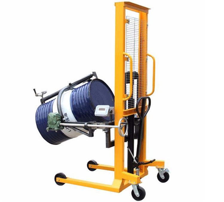 ? 帶電子秤重式,有置零、去皮、稱重功能,精確度達(dá)到3/1000kg。? 高質(zhì)量的油缸,腳踏、手動兩用式操作,起升速度快,起升高度能達(dá)到1600mm,手動360度翻轉(zhuǎn)。