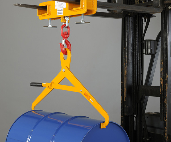 ? 此款簡易油桶吊夾是用來配合叉車行車或者吊車橫著吊運(yùn)油桶使用的,適宜