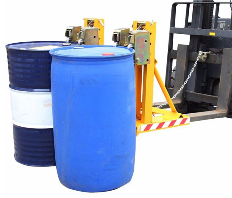 ? 純機械結構設計的輕型雙鷹嘴油桶夾具可與叉車方便地配合,僅依靠叉車