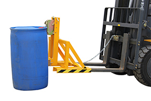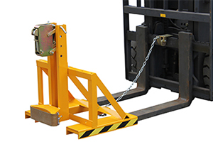 ? 與貨叉連接配有自鎖裝置確保油桶夾在坡度上和顛簸路面使用時(shí)不會(huì)滑落。