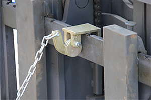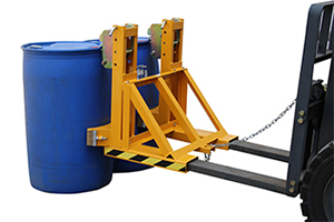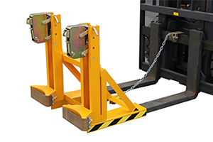 ? 與貨叉連接配有自鎖裝置確保油桶夾在坡度上和顛簸路面使用時(shí)不會(huì)滑落。
