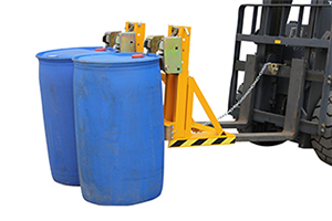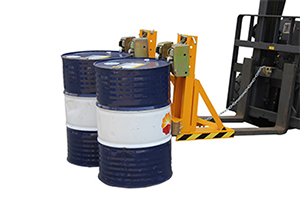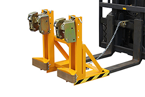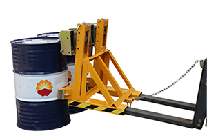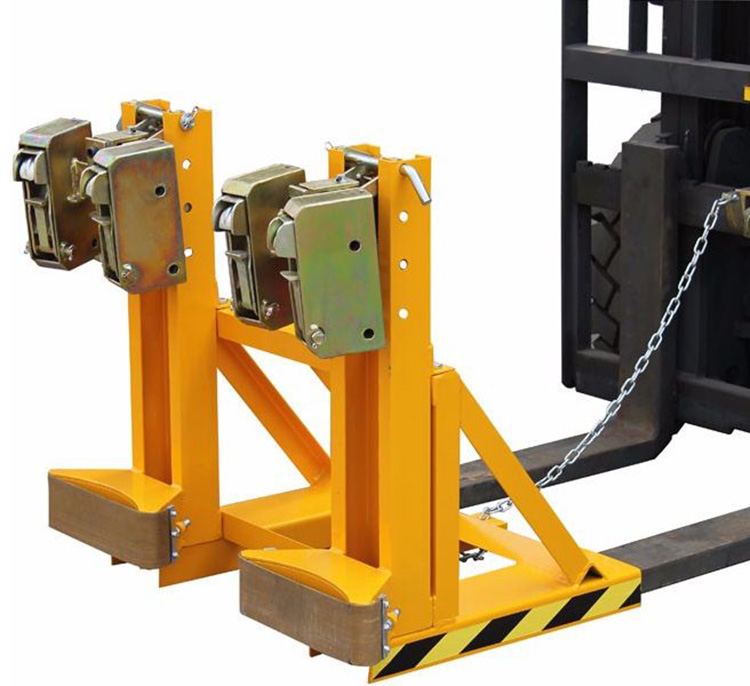 ? 與貨叉連接配有自鎖裝置確保油桶夾在坡度上和顛簸路面使用時(shí)不會(huì)滑落。