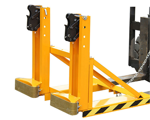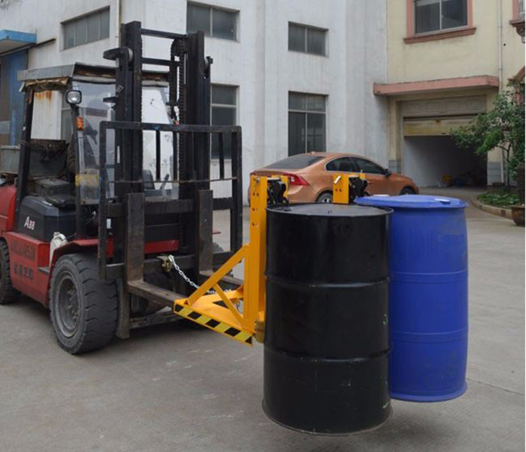 ? 與貨叉連接配有自鎖裝置確保油桶夾在坡度上和顛簸路面使用時不會滑落。