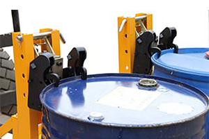 ? 純機械結構設計的重型雙油桶夾具可與叉車方便地配合,僅依靠叉車的動作,不需要其它動力,可自動一次搬運1-2個桶。