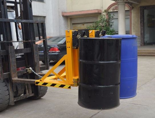 ? 與貨叉連接配有安全鏈連接或自鎖裝置確保油桶夾在坡度上和顛簸路面使用時不會滑落。