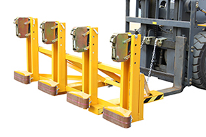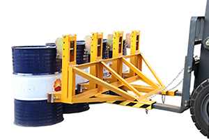 ? 與貨叉連接配有自鎖裝置確保油桶夾在坡度上和顛簸路面使用時(shí)不會(huì)滑落。