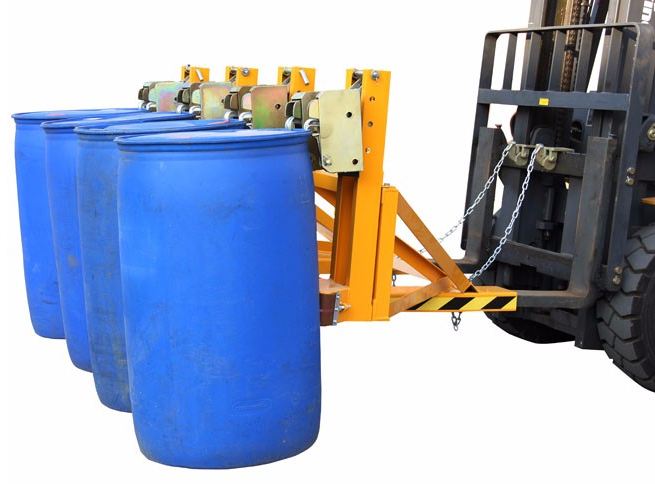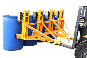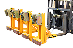? 與貨叉連接配有自鎖裝置確保油桶夾在坡度上和顛簸路面使用時(shí)不會(huì)滑落。