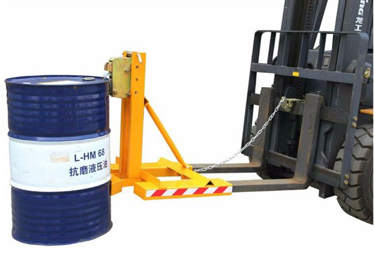 ? 純機械結(jié)構(gòu)設(shè)計的輕型單鷹嘴油桶夾具可與叉車方便地配合,僅依靠叉車的動作,不需其他動力,可自動一次搬運1個桶。