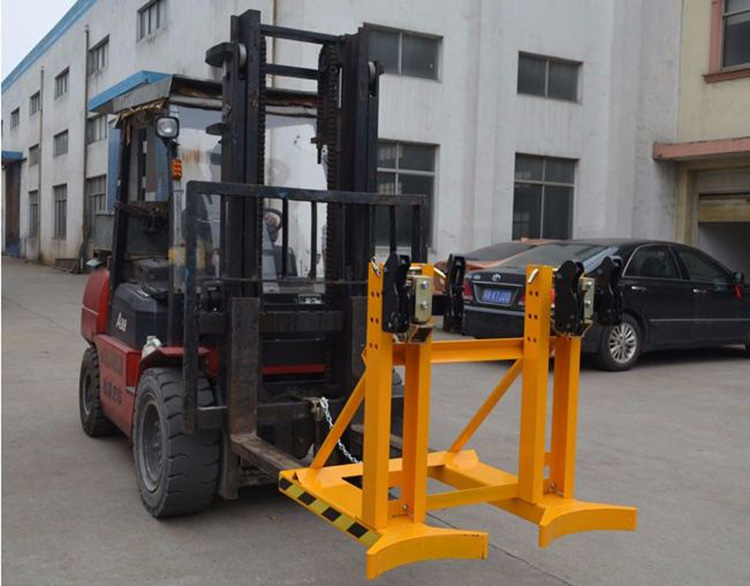 ? 純機械結構設計的輕型雙鷹嘴雙油桶夾具可與叉車方便地配合,僅依靠叉車的