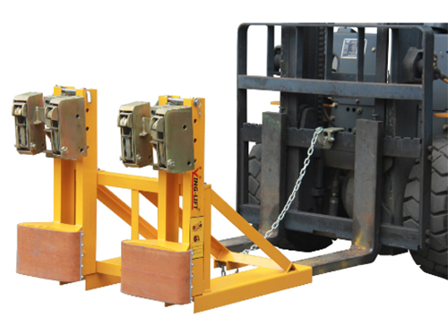 ? 與貨叉連接配有自鎖裝置確保油桶夾在坡度上和顛簸路面使用時不會滑落。
