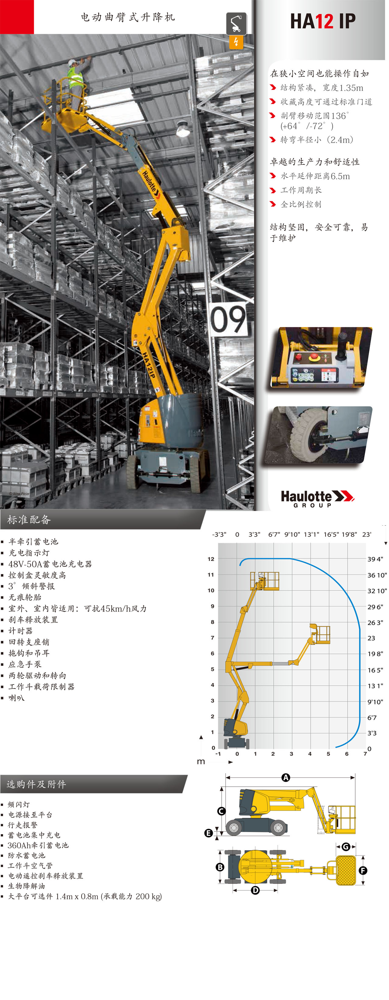 》電動曲臂式升降機,結(jié)構(gòu)緊湊,寬度1.35m,在狹小空間也能操作自如