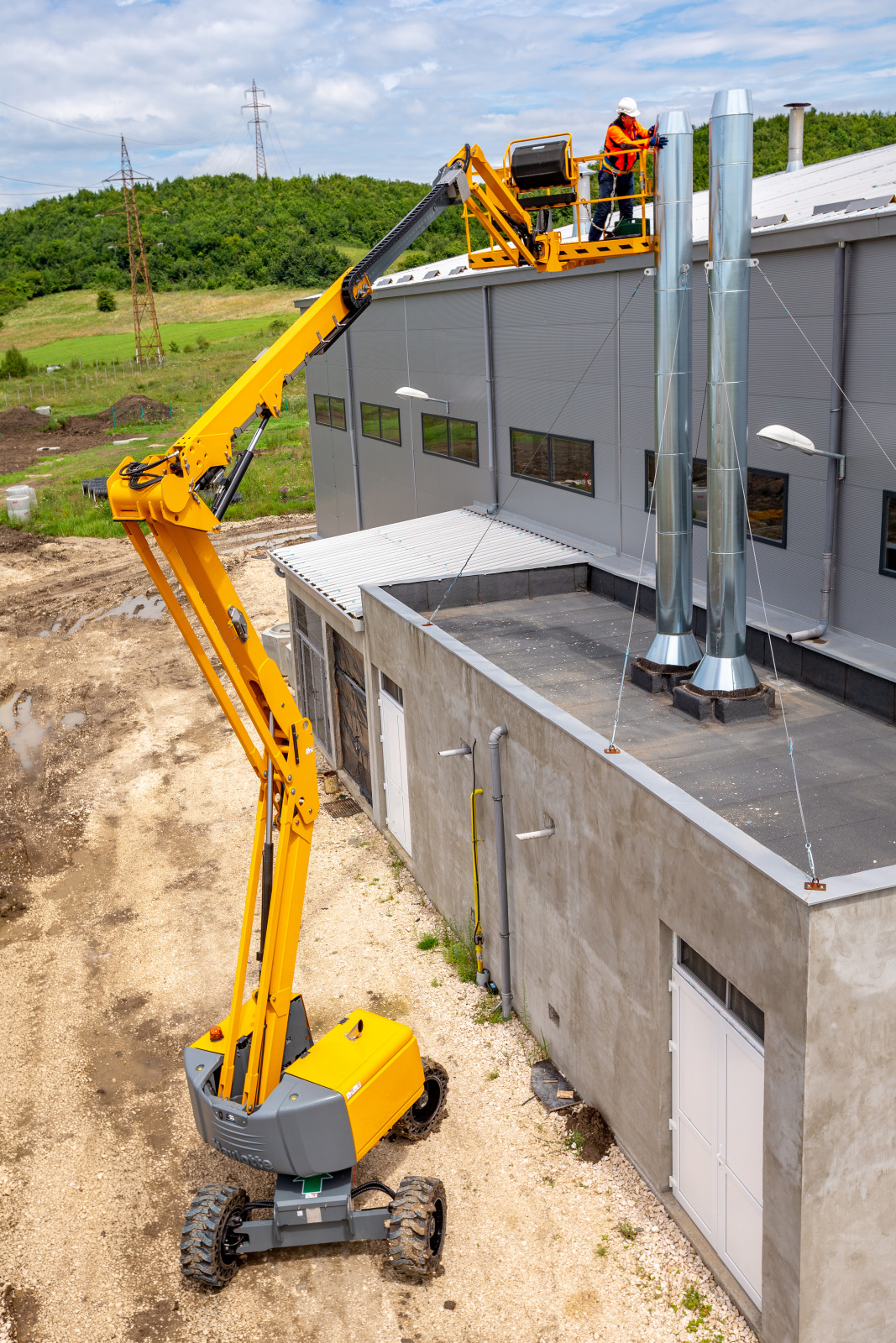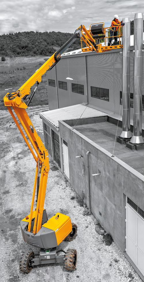 》16米越野曲臂高空作業(yè)平臺,性能出眾,水平伸距8.3米,從地面升至最高點(diǎn)只需40秒
