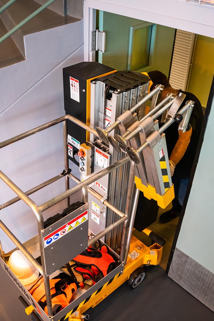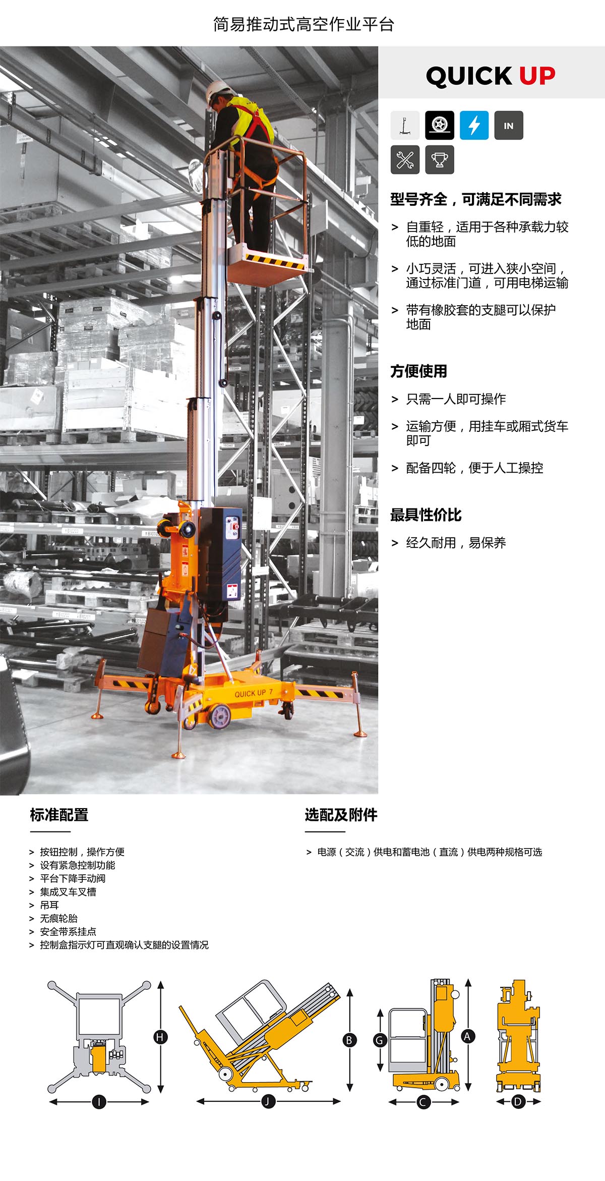 》帶有橡膠套的支腿可以保護(hù)地面,配備四輪,便于人工操控