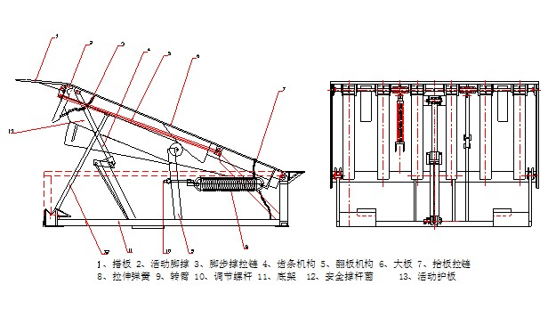 ? 平臺(tái)操作極其簡(jiǎn)單,提起抬板拉鏈,齒條鎖緊機(jī)構(gòu)張開(kāi),拉伸彈簧拉力拉動(dòng)轉(zhuǎn)臂,轉(zhuǎn)臂將大板抬起,當(dāng)大板抬到最高位置時(shí),人站大板抬起