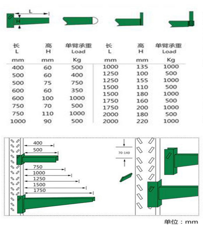 定,載重能力好、空間利用率高等特點。懸臂式貨架立柱多采用H型鋼或冷軋