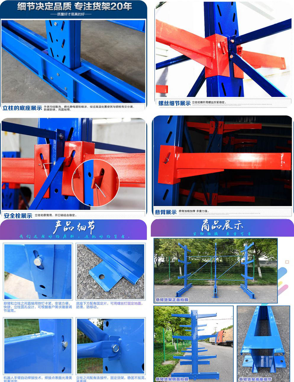 板材、管材及不規(guī)則貨物。懸臂可以是單面或雙面,懸臂式貨架具有結(jié)構(gòu)穩(wěn)