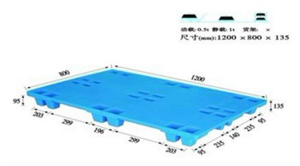 單面塑料托盤只能一面使用,表面有網(wǎng)格狀和平板狀兩種,底部有川字型、田字型、九腳型。