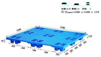 單面塑料托盤只能一面使用,表面有網格狀和平板狀兩種,底部有川字型、田字型、九腳型。