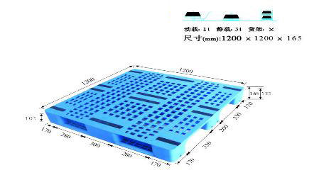 單面塑料托盤(pán)只能一面使用,表面有網(wǎng)格狀和平板狀兩種,底部有川字型、田字型、九腳型。