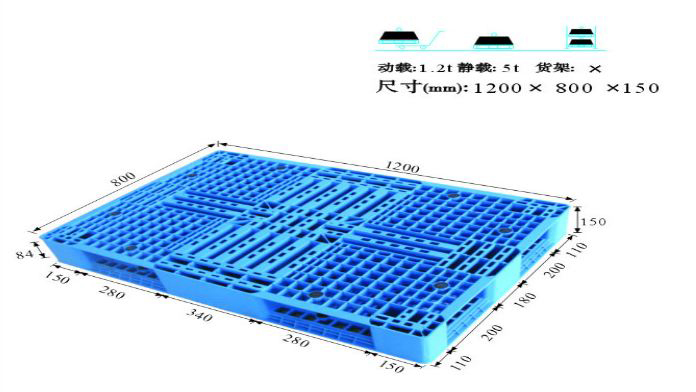 單面塑料托盤只能一面使用,表面有網(wǎng)格狀和平板狀兩種,底部有川字型、田字型、九腳型。