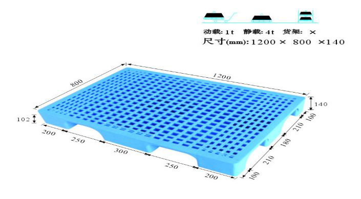 單面塑料托盤只能一面使用,表面有網格狀和平板狀兩種,底部有川字型、田字型、九腳型。