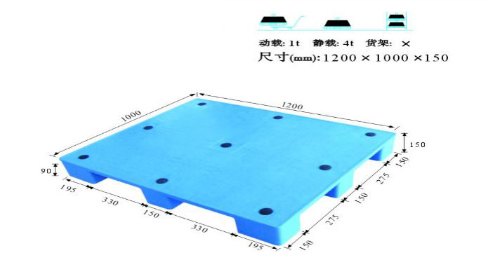 單面塑料托盤只能一面使用,表面有網(wǎng)格狀和平板狀兩種,底部有川字型、田字型、九腳型。