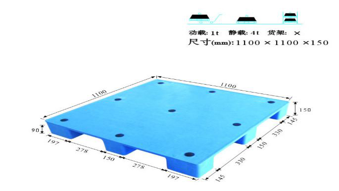 單面塑料托盤(pán)只能一面使用,表面有網(wǎng)格狀和平板狀兩種,底部有川字型、田字型、九腳型。