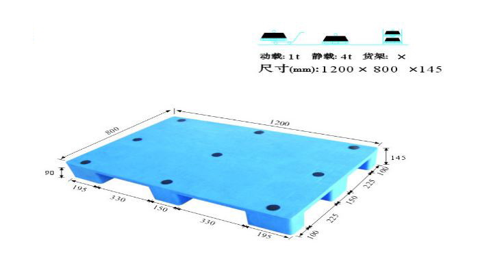 單面塑料托盤(pán)只能一面使用,表面有網(wǎng)格狀和平板狀兩種,底部有川字型、田字型、九腳型。